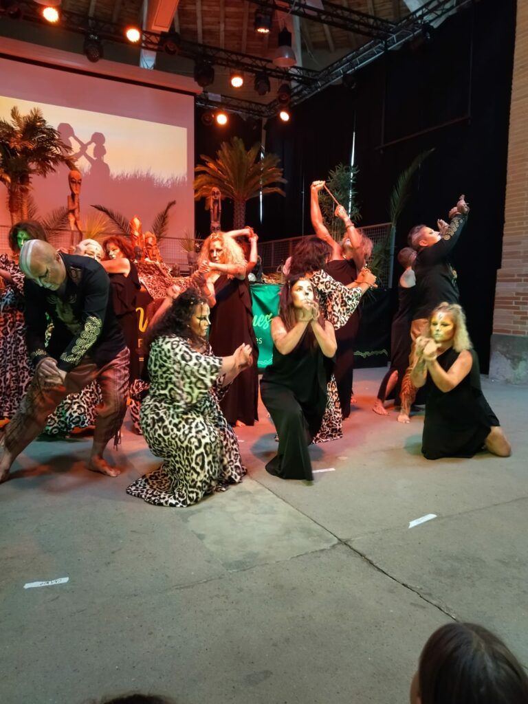 Une ambiance de savane, un mélange de sonorités africaines, une mise en scène poétique. Un message de paix et de liberté. Une mise en scène de costumes noirs, simple et de robes drapées, aux impressionnants maquillages de félins très artistiques. Un vrai tableau vivant. Son originalité, sa mise en scène poétique, un véritable tableau vivant. Le public a admiré les maquillages très artistiques et s’est laissé aller au rythme et au vent de la savane.